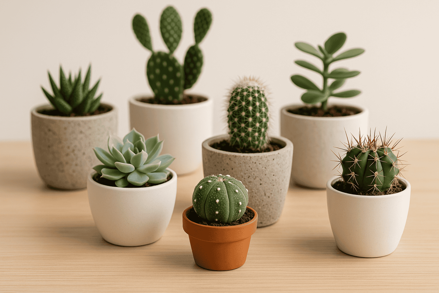 Mini cacti and succulents are ideal for modern interiors. In Belgium and the Netherlands, where clean and minimal design dominates, these tiny plants fit perfectly into compact city apartments and busy office desks. They need little water, thrive with indirect sunlight, and stay green all year long.