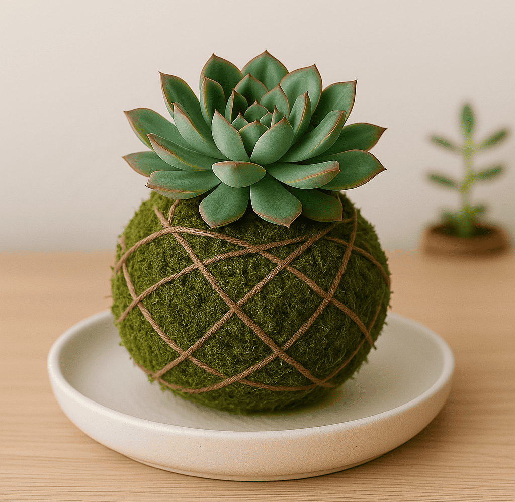 Succulent kokedama is a variation of the traditional Japanese kokedama, which literally means “moss ball.” Instead of planting succulents in standard pots, the roots are wrapped in a ball of soil and moss, creating a natural, sculptural effect. This design removes the need for a traditional pot and turns your plant into a piece of botanical décor.