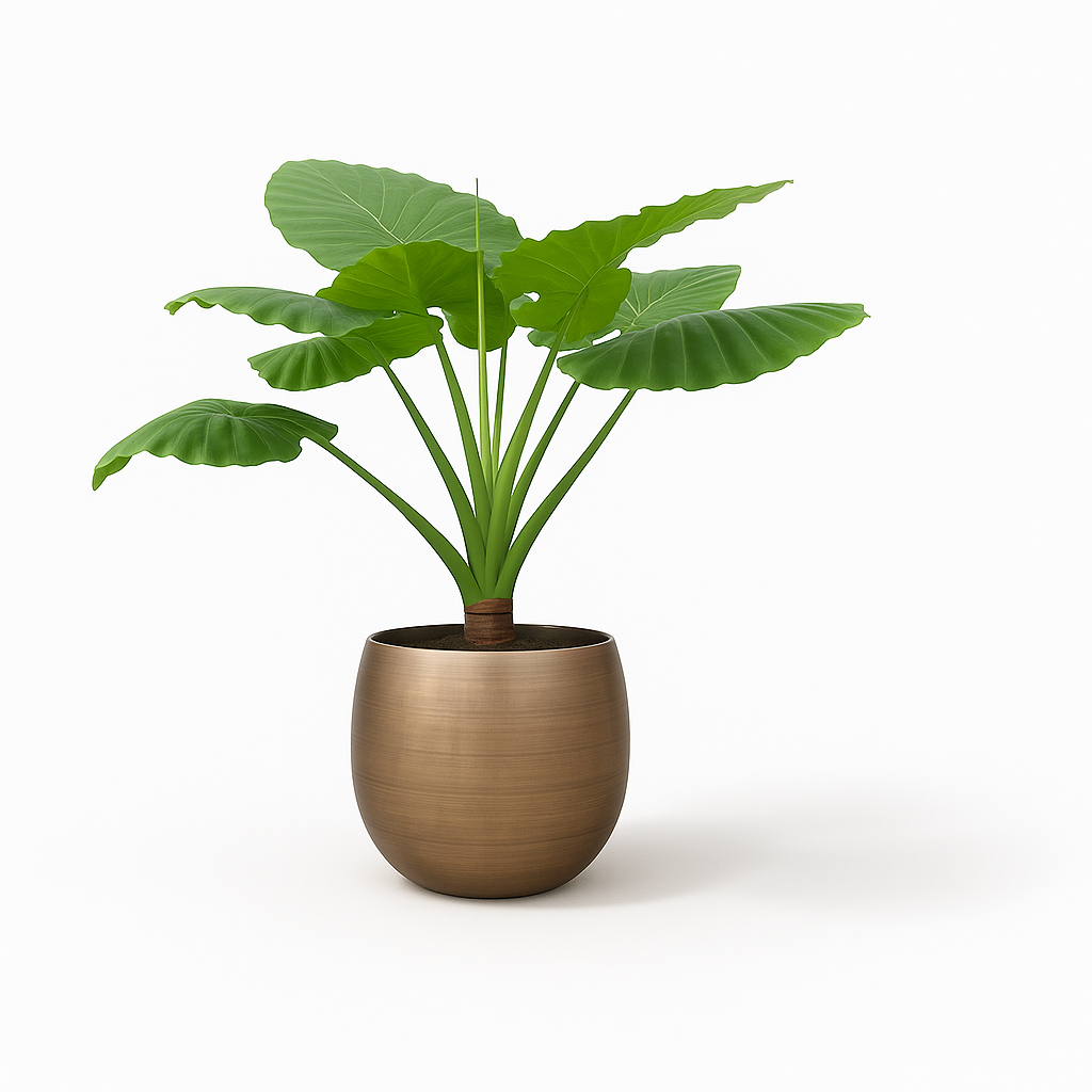 De Alocasia Portodora enkele stam is een opvallende kamerplant met een robuuste stam en indrukwekkende, golvende bladeren. Deze tropische schoonheid combineert een krachtige uitstraling met natuurlijke elegantie. Ideaal voor liefhebbers van groen design in moderne interieurs.