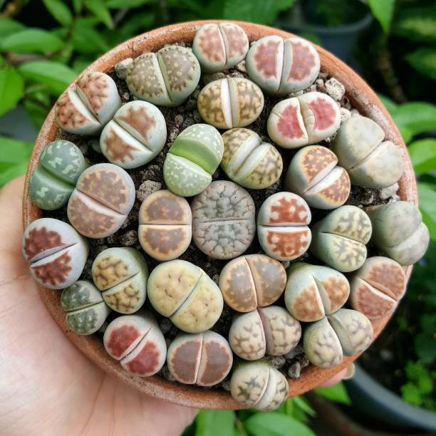 De Lithops, ook wel levende steen genoemd, is een bijzondere en zeldzame vetplant die opvalt door zijn unieke uiterlijk. Dankzij zijn steenachtige vorm en natuurlijke camouflage lijkt deze plant rechtstreeks uit de woestijn te komen. Een echte blikvanger voor elke plantenliefhebber.