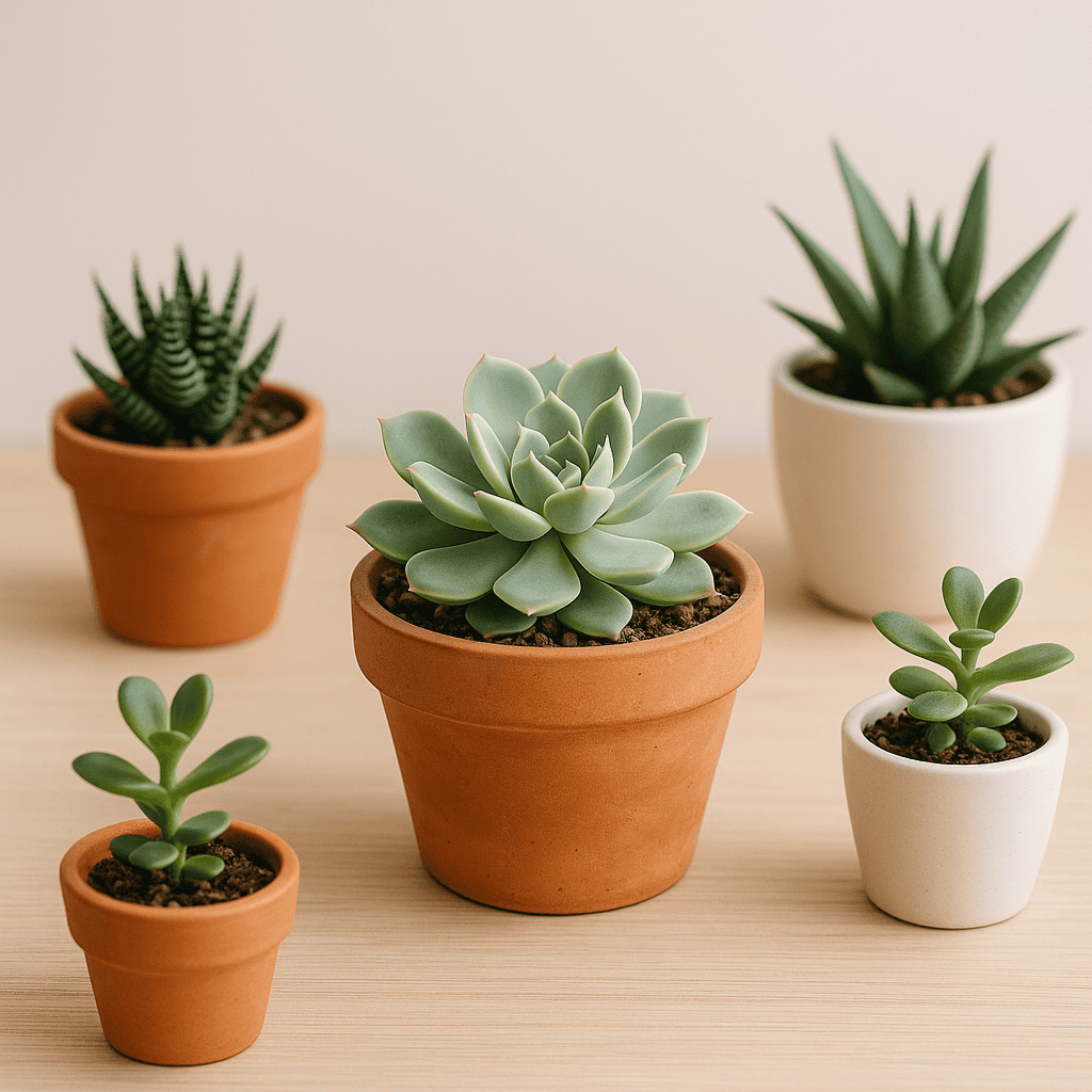 Mini vetplantjes en cactussen zijn erg populair in België en Nederland. Ze zijn ideaal voor decoratie, maar vereisen precieze potmaten. Gebruik potten die slechts 1–2 cm breder zijn dan de plant. Ongeglazuurde keramiek of terracotta met afwatering is het beste.